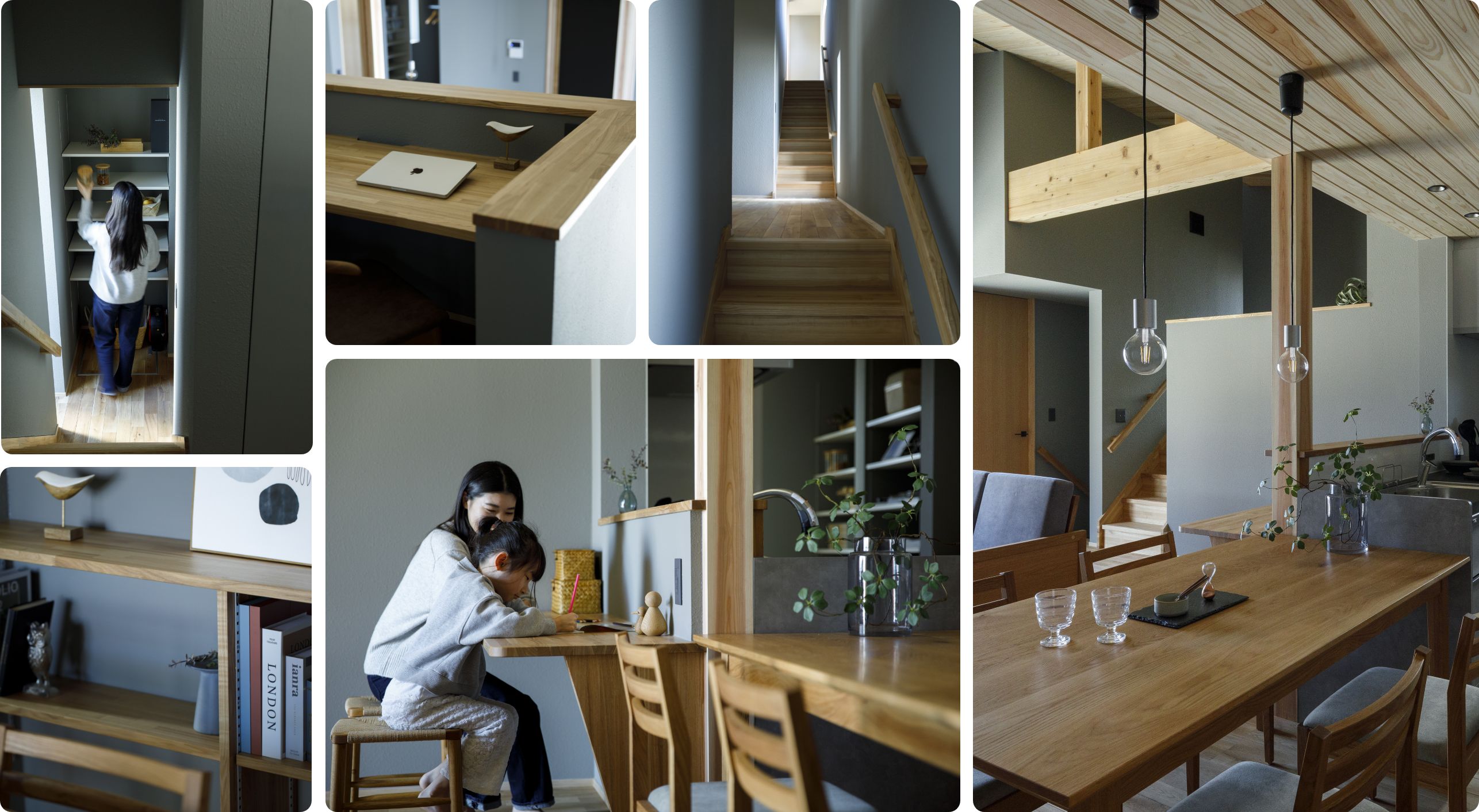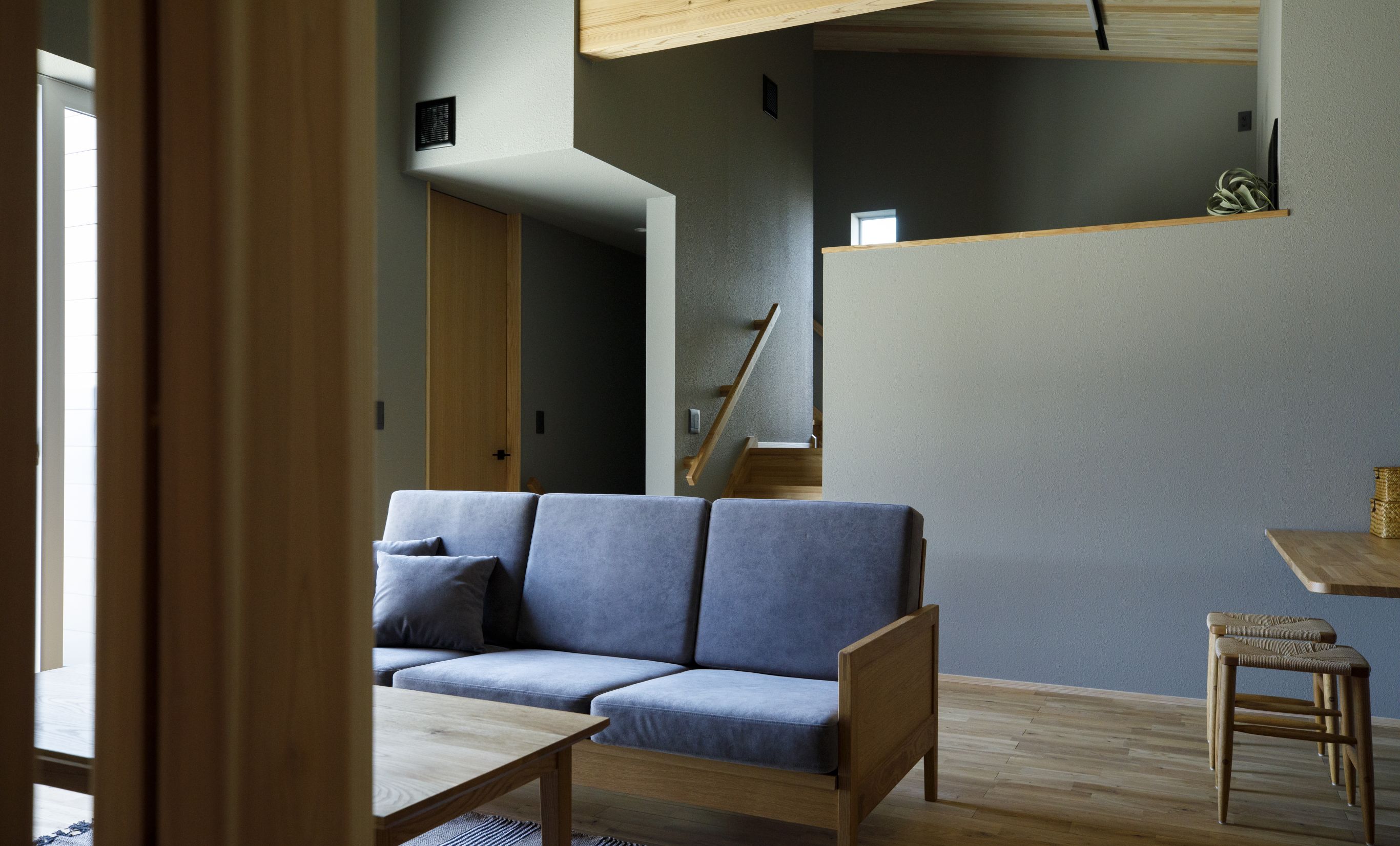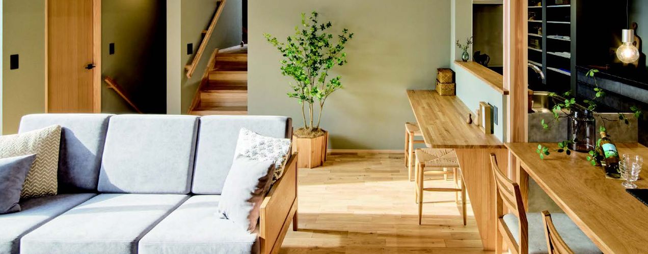 使用している部材はすべて国産の「無垢材」。心やすらぐ木々の香り。自然素材を使用した安心の住まい。深い森にいるような穏やかなトーンです。
